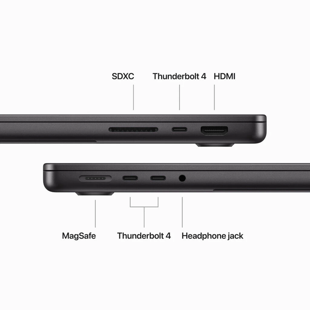 Ports: HDMI, MagSafe, 3x Thunderbolt / USB 4
